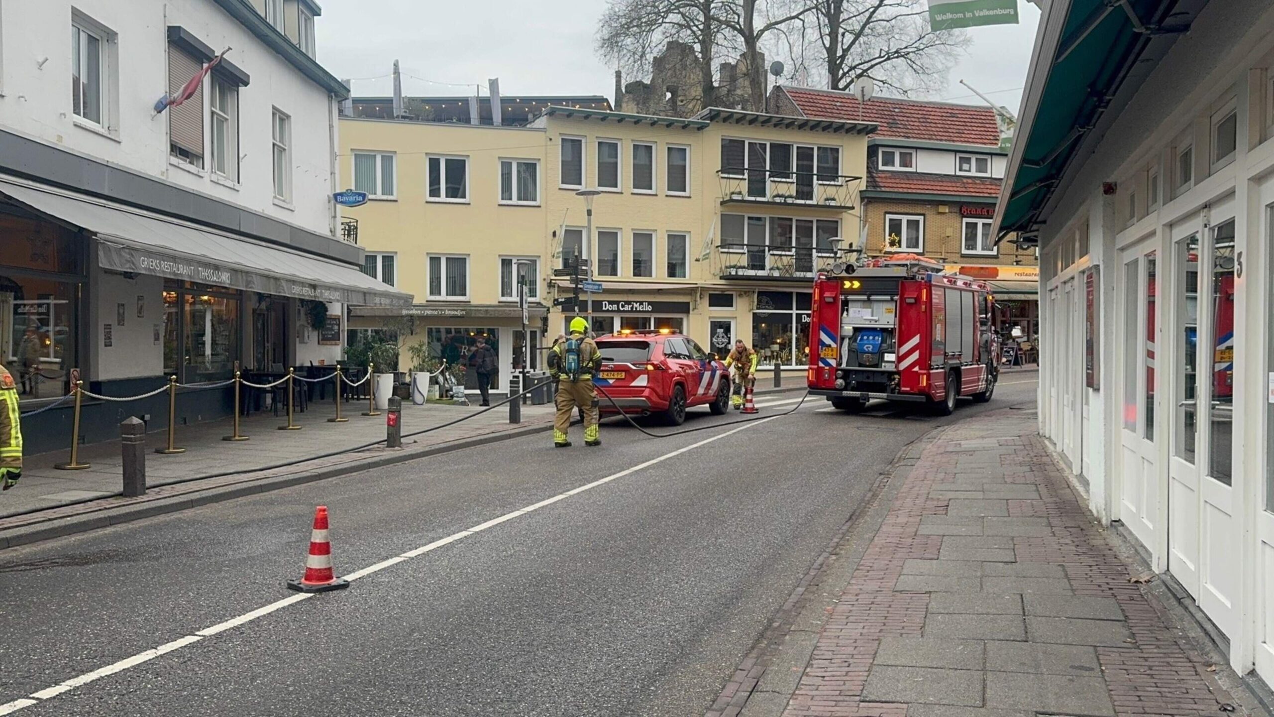 Het Grendelplein in het centrum van Valkenburg is vrijdagmiddag afgesloten voor het verkeer na meldingen van een ‘vreemde geur’.